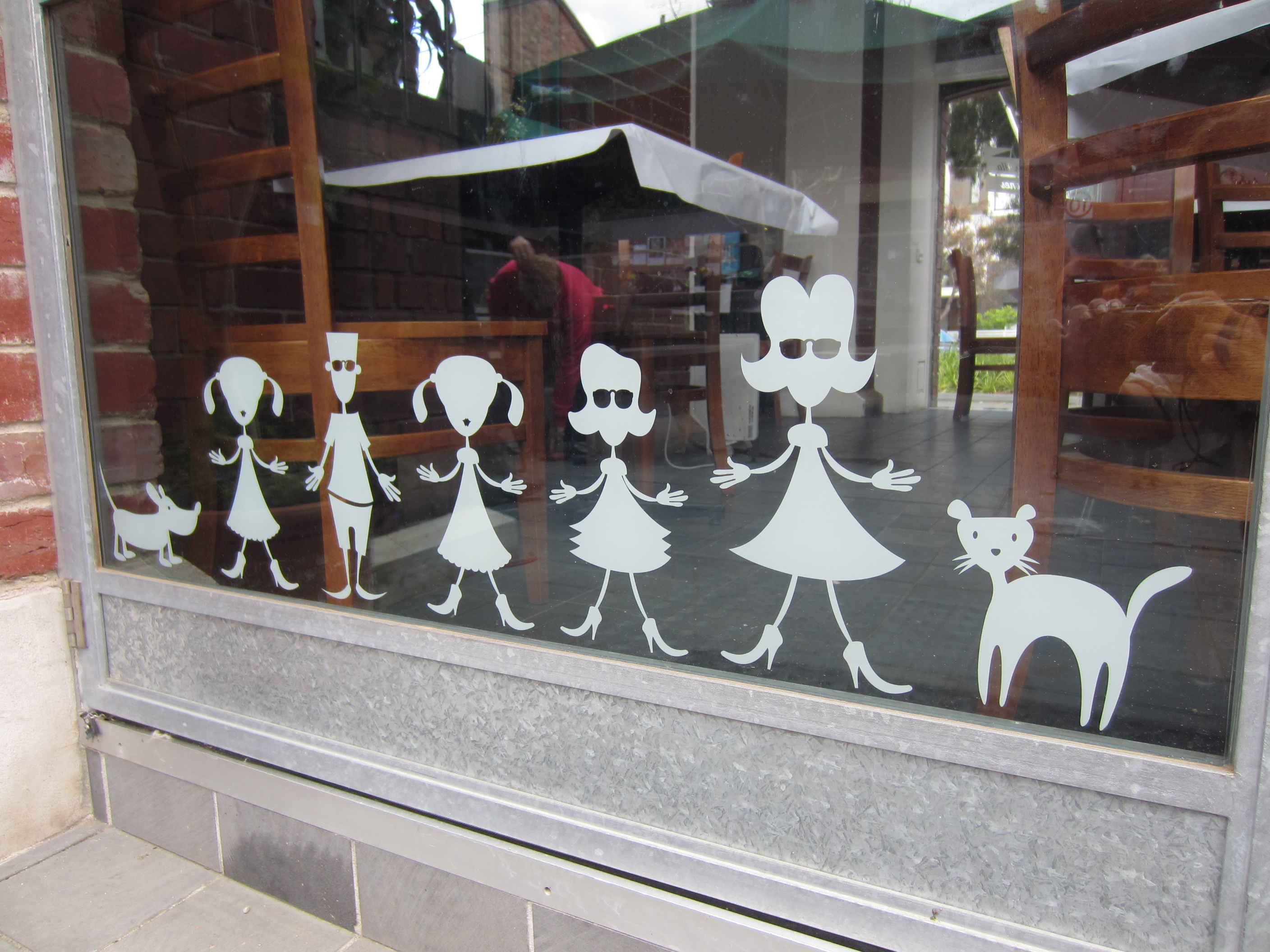 The comfort food cafe’s own cute as a button cartoon graphics can be found all around the exterior windows and inside as features on their signage and POS material. Tell me these aren’t soo much better than those stick figure stickers (you know what I’m talking about!)