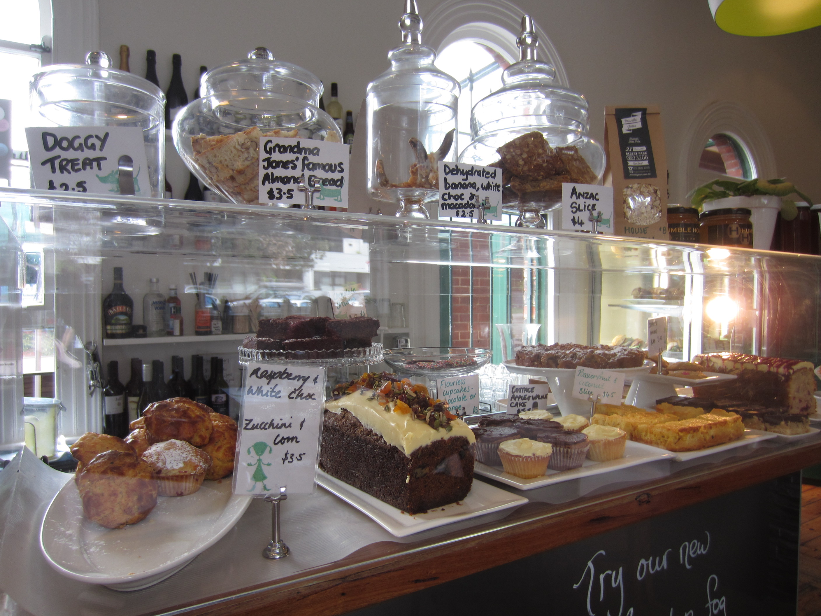 Tempting treats for everyone on two legs as well as four! I can definitely vouch for everything tasting just like Nana used to make them, with the cafe sourcingrecipes from their real life grannies! Okay, I know the last sentence may have been uttered a bit tongue in cheek but Priscilla Jones is named after Bronwyn’s grandmother, Priscilla and her mother’s maiden name Jones. Word on the street the cafe owner’s mummies were also wonderful cooks and the delicious duo continues the tradition of representing their renowned recipes with a modern twist ;)
